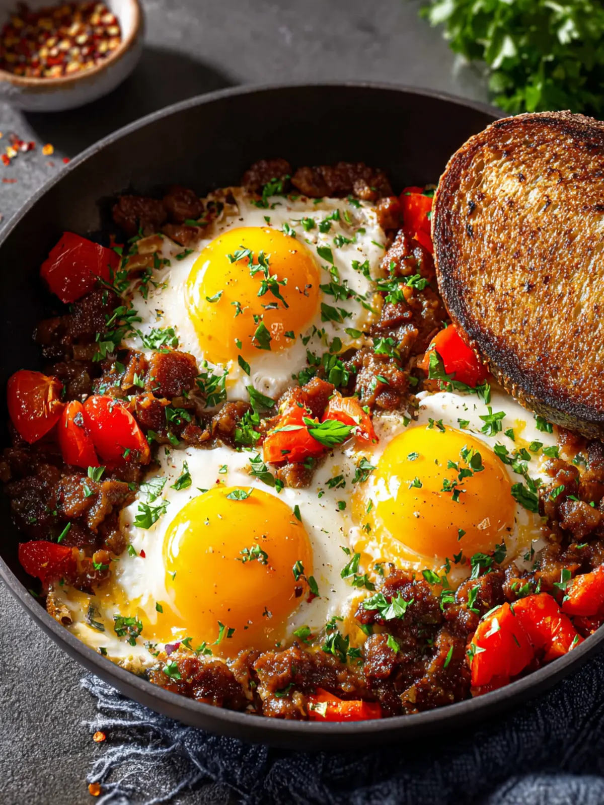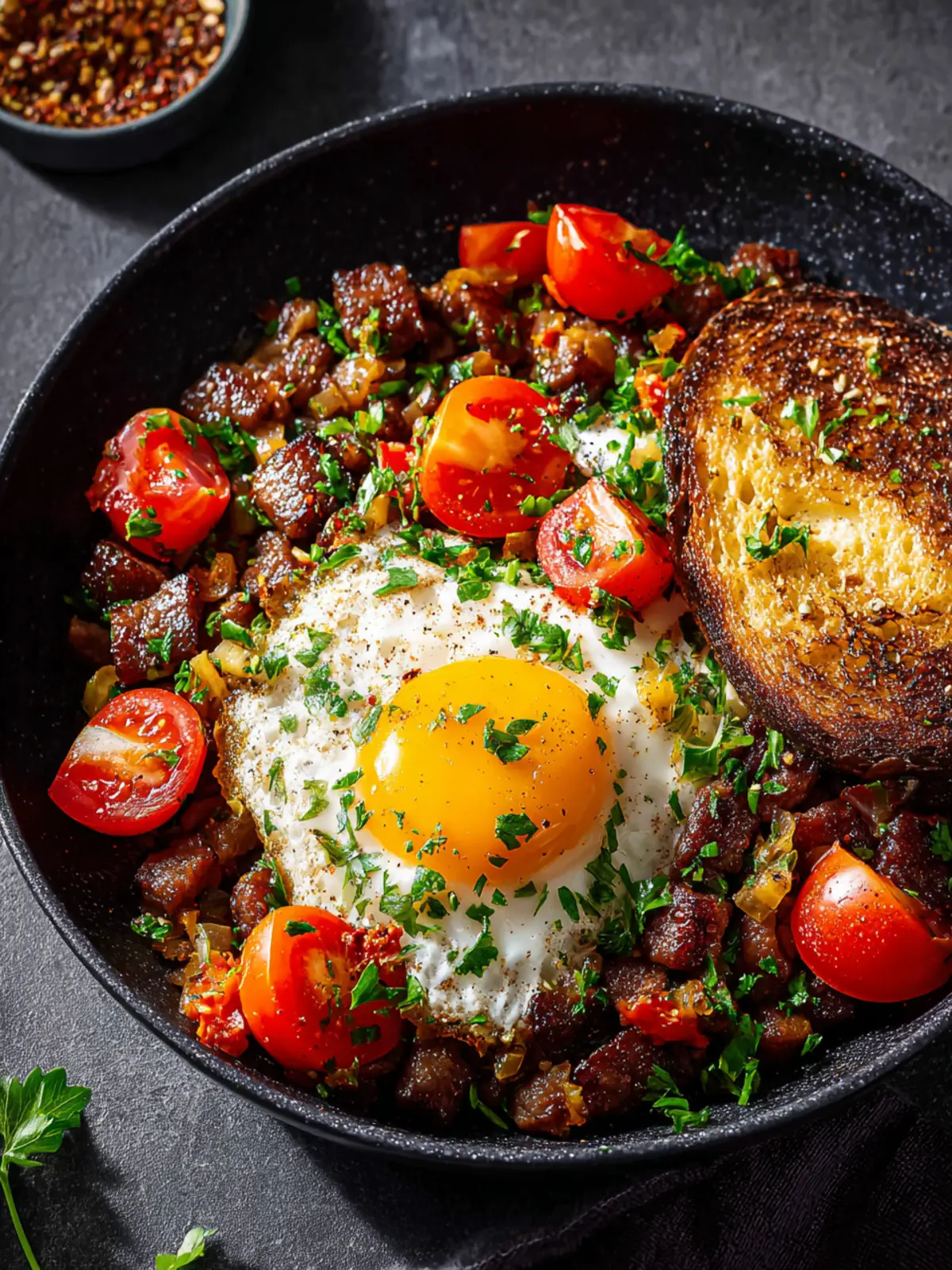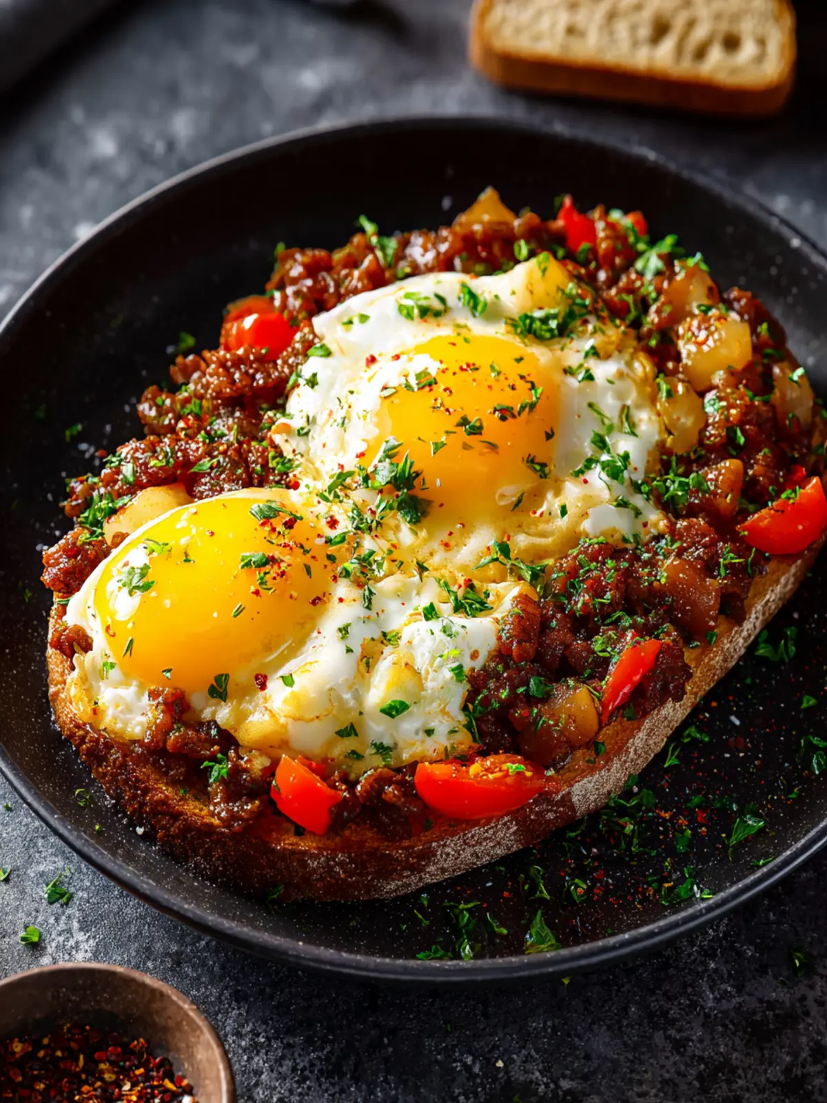 Crusty Whole Grain Toast: Serve your beef and eggs over a slice of toasted whole grain bread—its nutty texture will complement the richness of the dish perfectly, allowing you to scoop up every delicious bite.