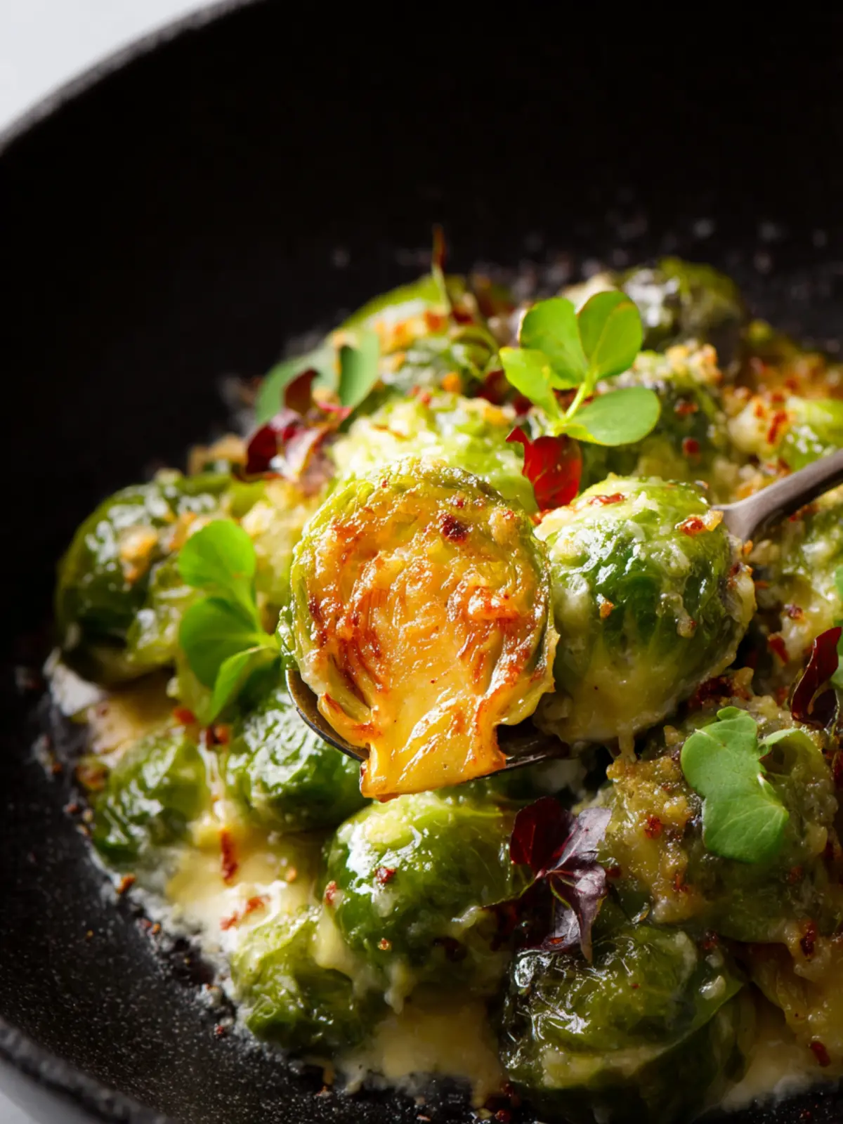 Creamy Comfort: The luscious combination of cream and cheese creates a comforting texture that pairs perfectly with the slight bitterness of the sprouts. It’s like a warm hug for your taste buds.