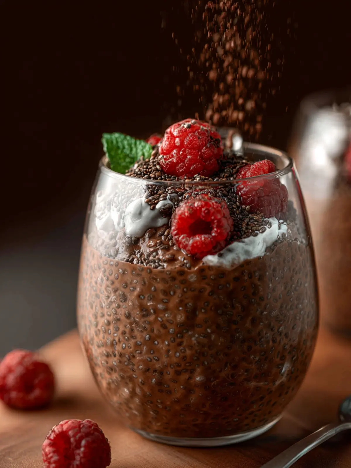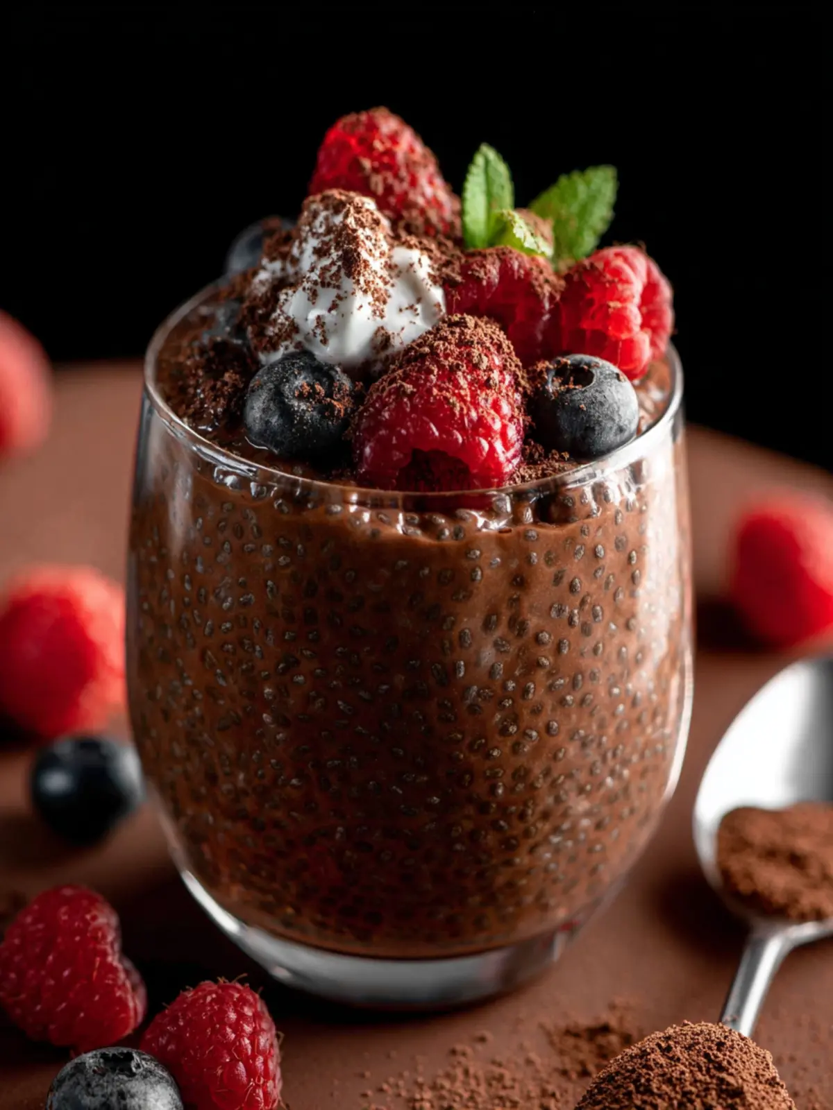 A delicious and nutritious chia pudding alternative with cocoa flavor.