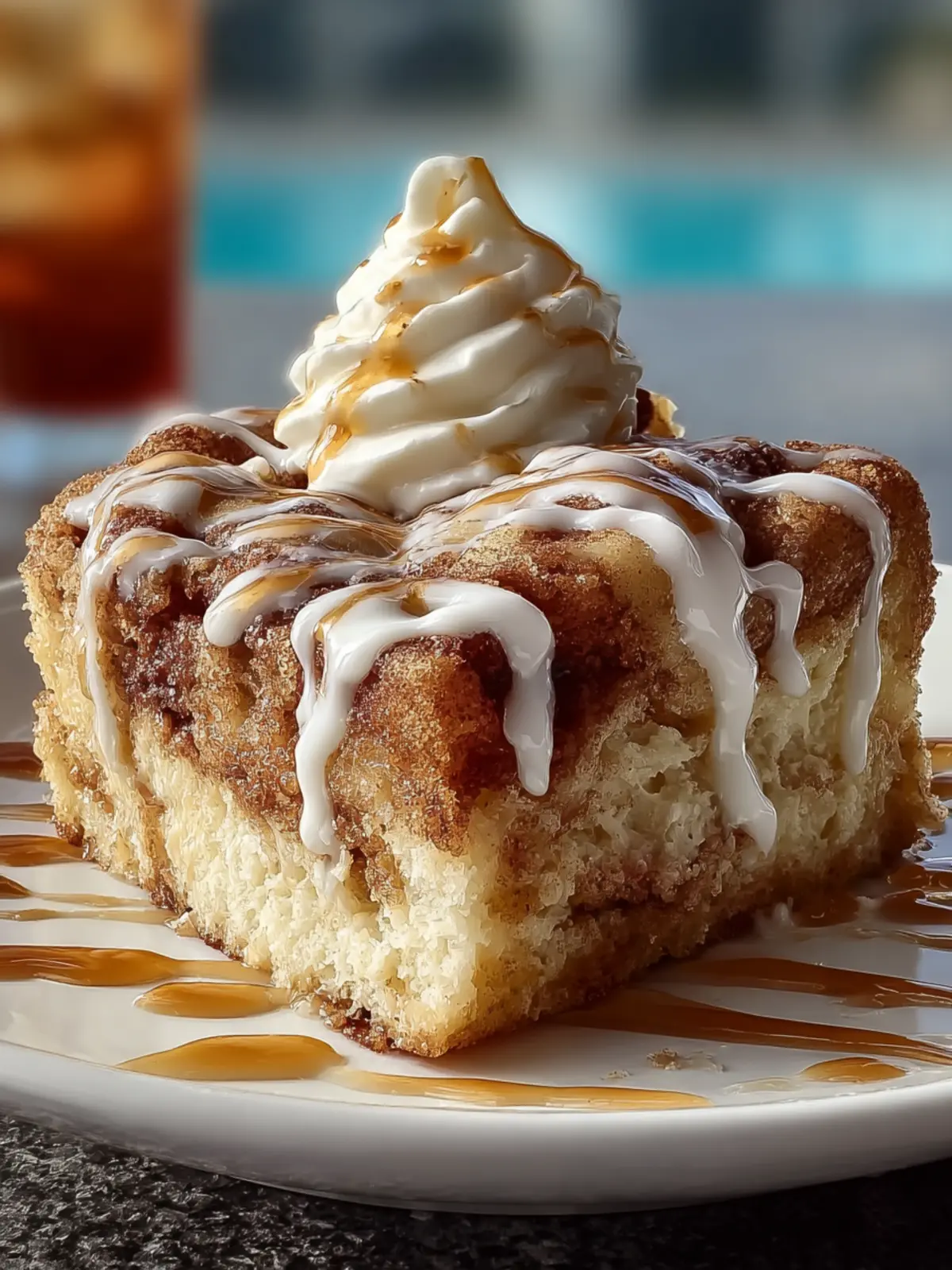 Layered Flavor: The cake is infused with a luscious cinnamon filling that seeps into the holes you create when poking it, ensuring every bite is bursting with that classic cinnamon roll taste.
