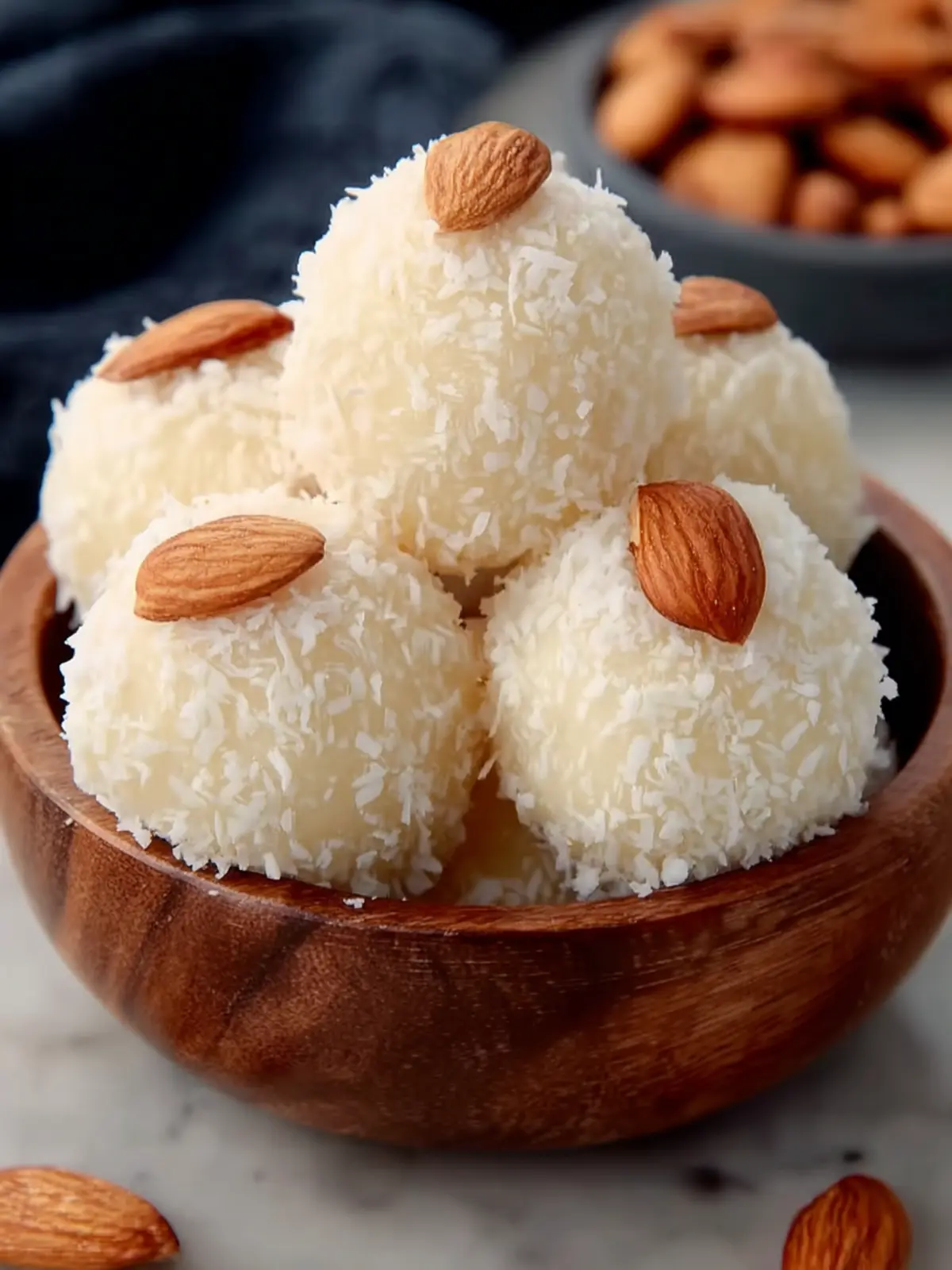 These sweet balls offer an irresistible blend of flavors. The rich notes of almond meld beautifully with the natural sweetness of coconut, creating a taste sensation that’s both comforting and refreshing. Whether you’re enjoying them as an afternoon snack or serving them at a gathering, they’re sure to impress.