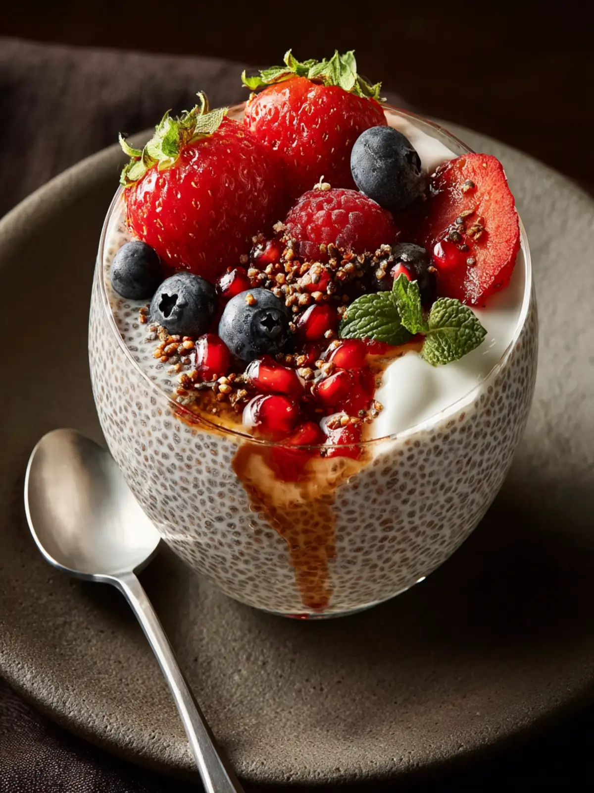 Toppings: Fresh fruits, nuts, and seeds add texture and additional flavors. Berries complement the pudding beautifully, while nuts provide crunch.