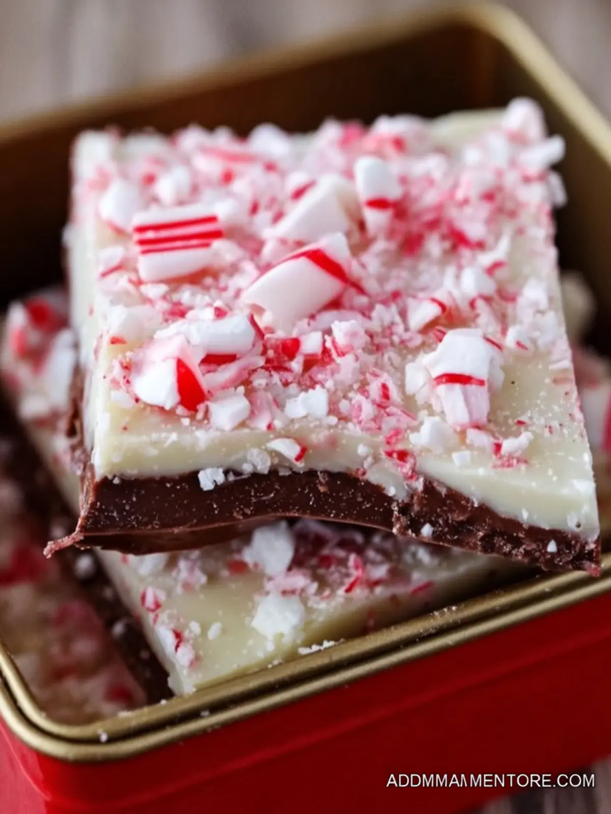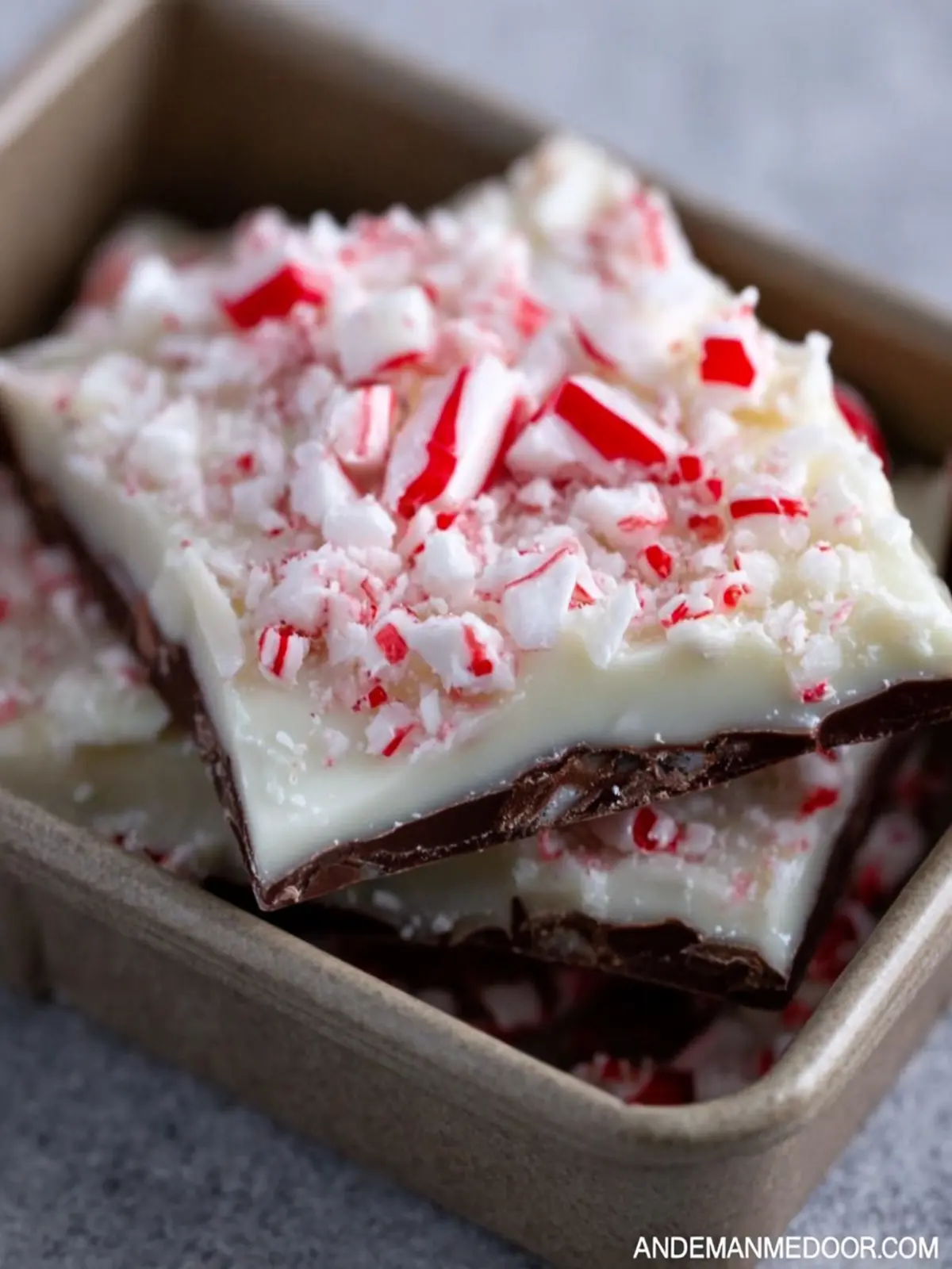 A delicious and festive peppermint bark made with dark and white chocolate, perfect for the holidays.