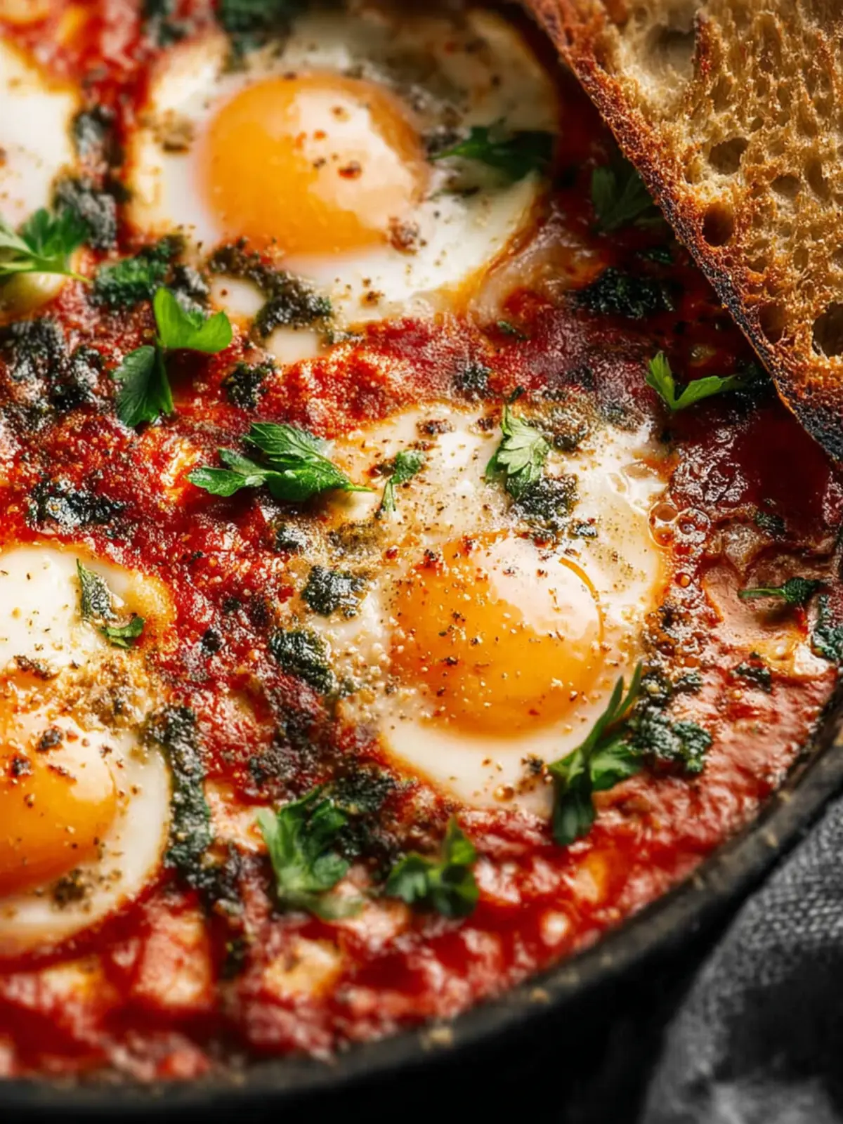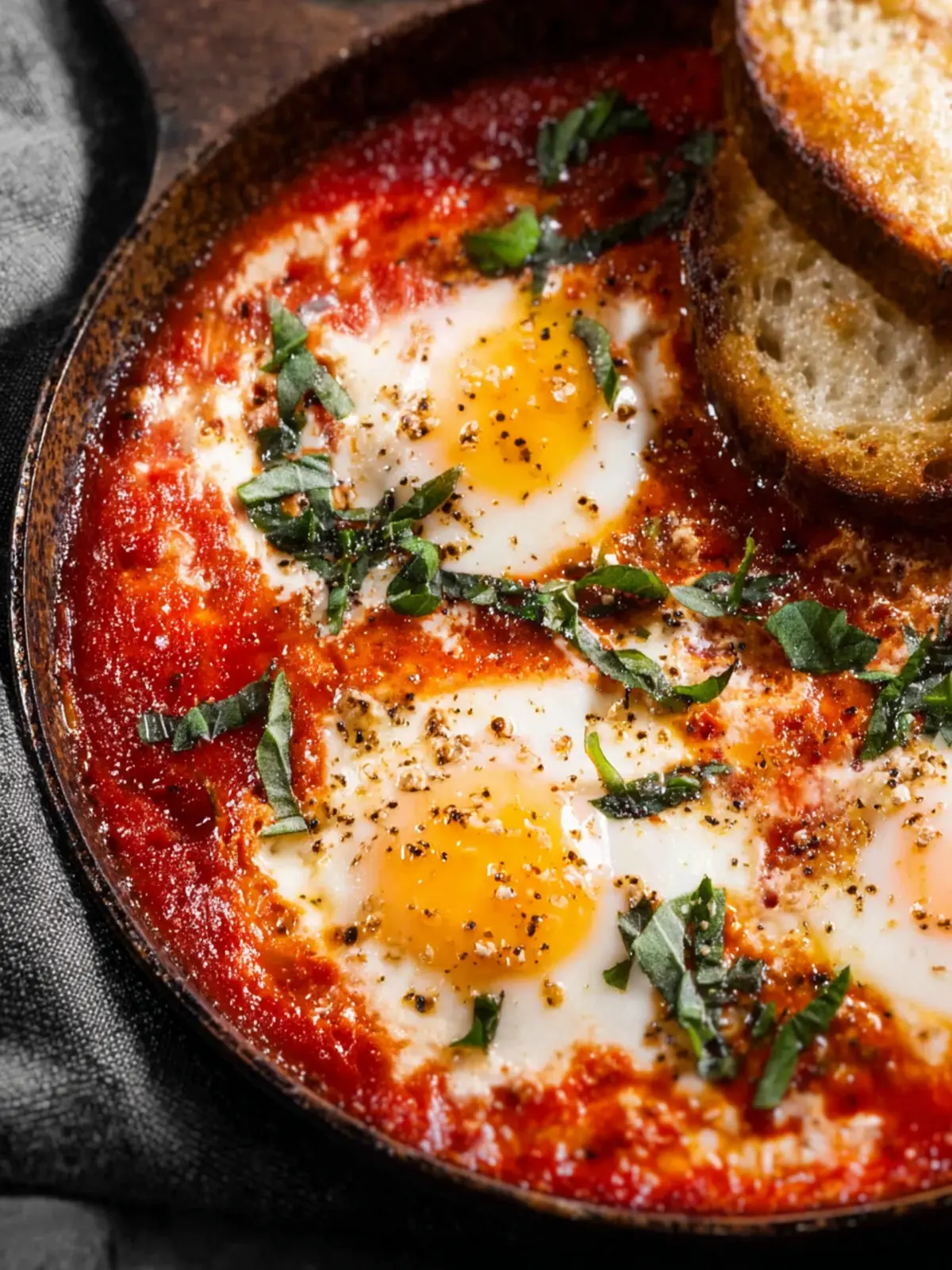 Eggs: The stars of this dish, eggs should be fresh and of good quality. Cooking them gently in the spicy tomato sauce allows them to absorb flavors while retaining their runny yolks—perfect for dipping crusty bread.