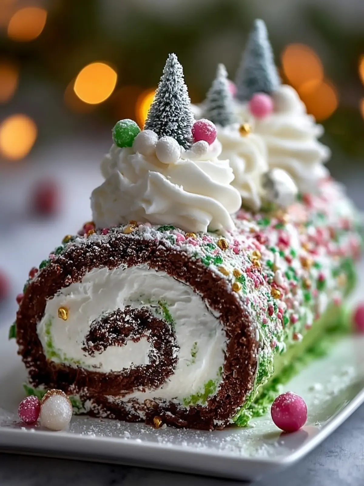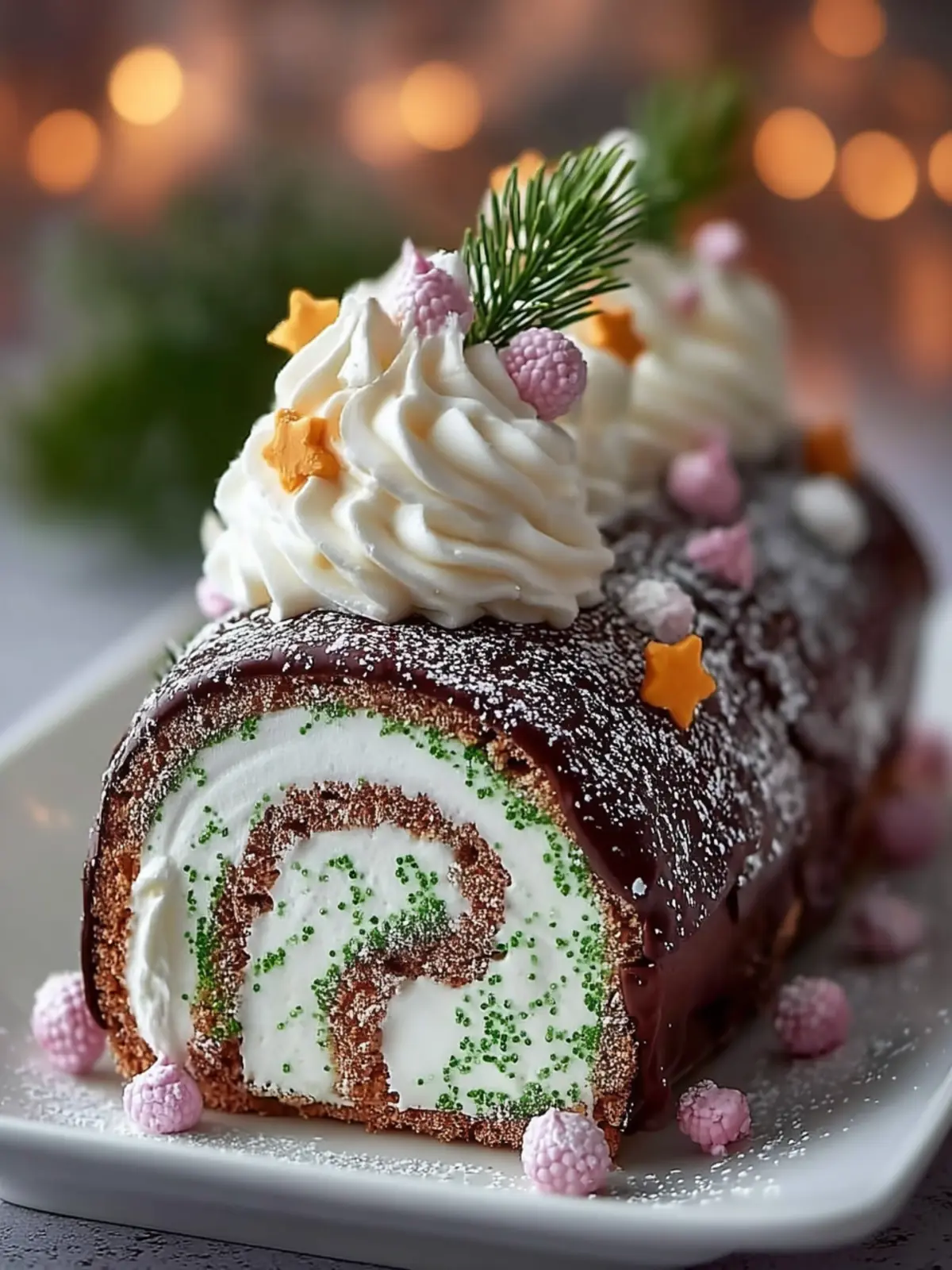 A delightful and festive Yule log cake perfect for Christmas celebrations!