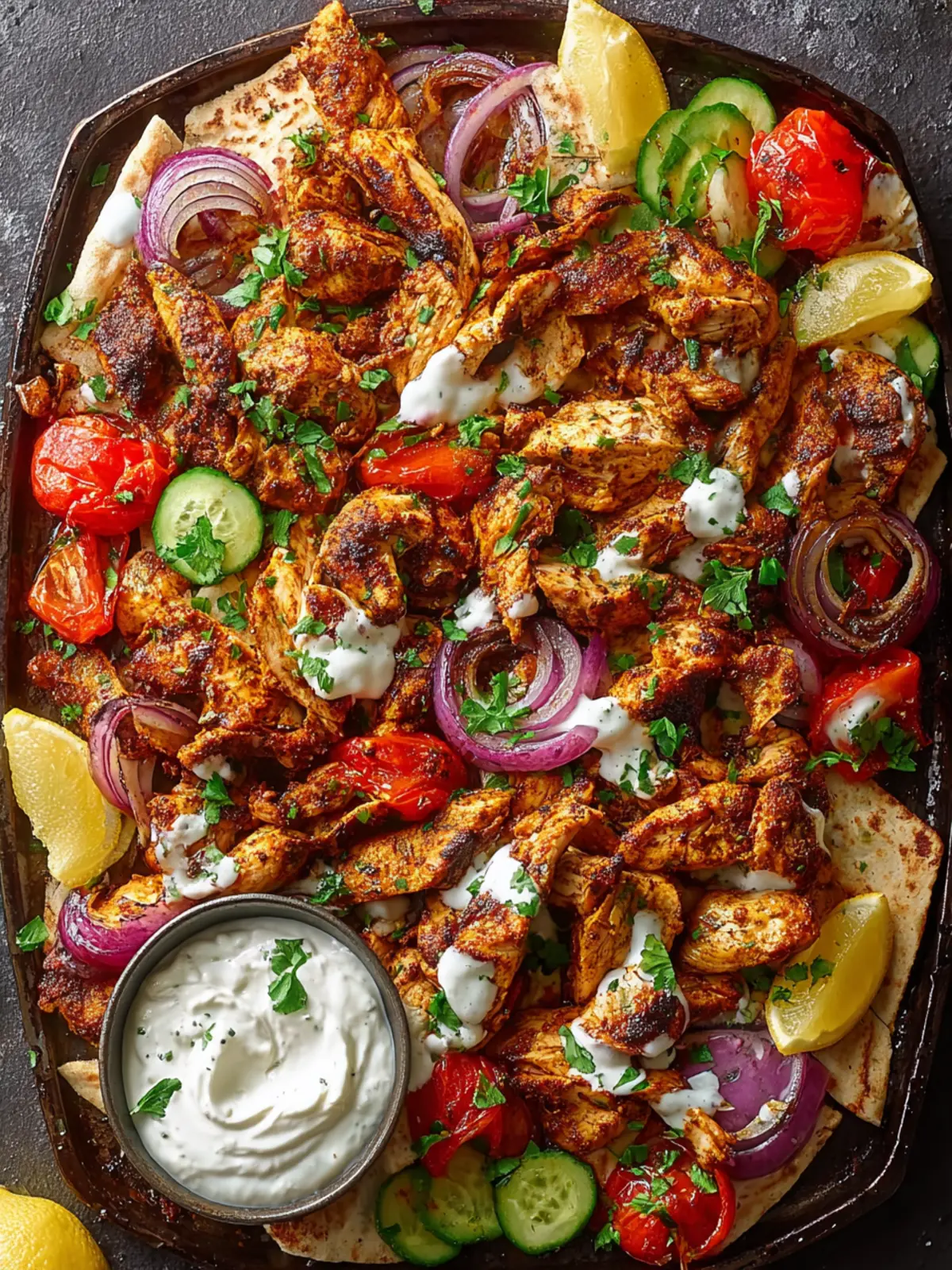 - Warm pita bread or flatbreads: These are perfect for wrapping your chicken shawarma.