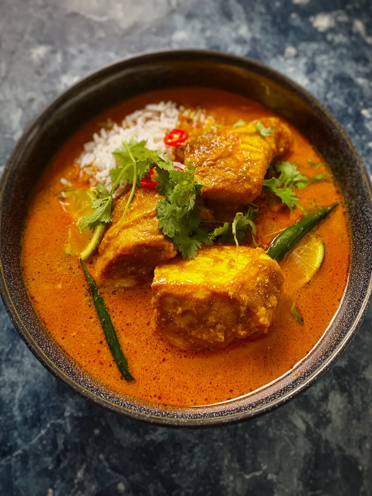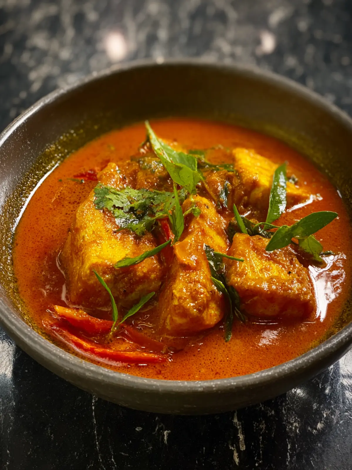 A flavorful and spicy fish curry made with a variety of spices and coconut milk.