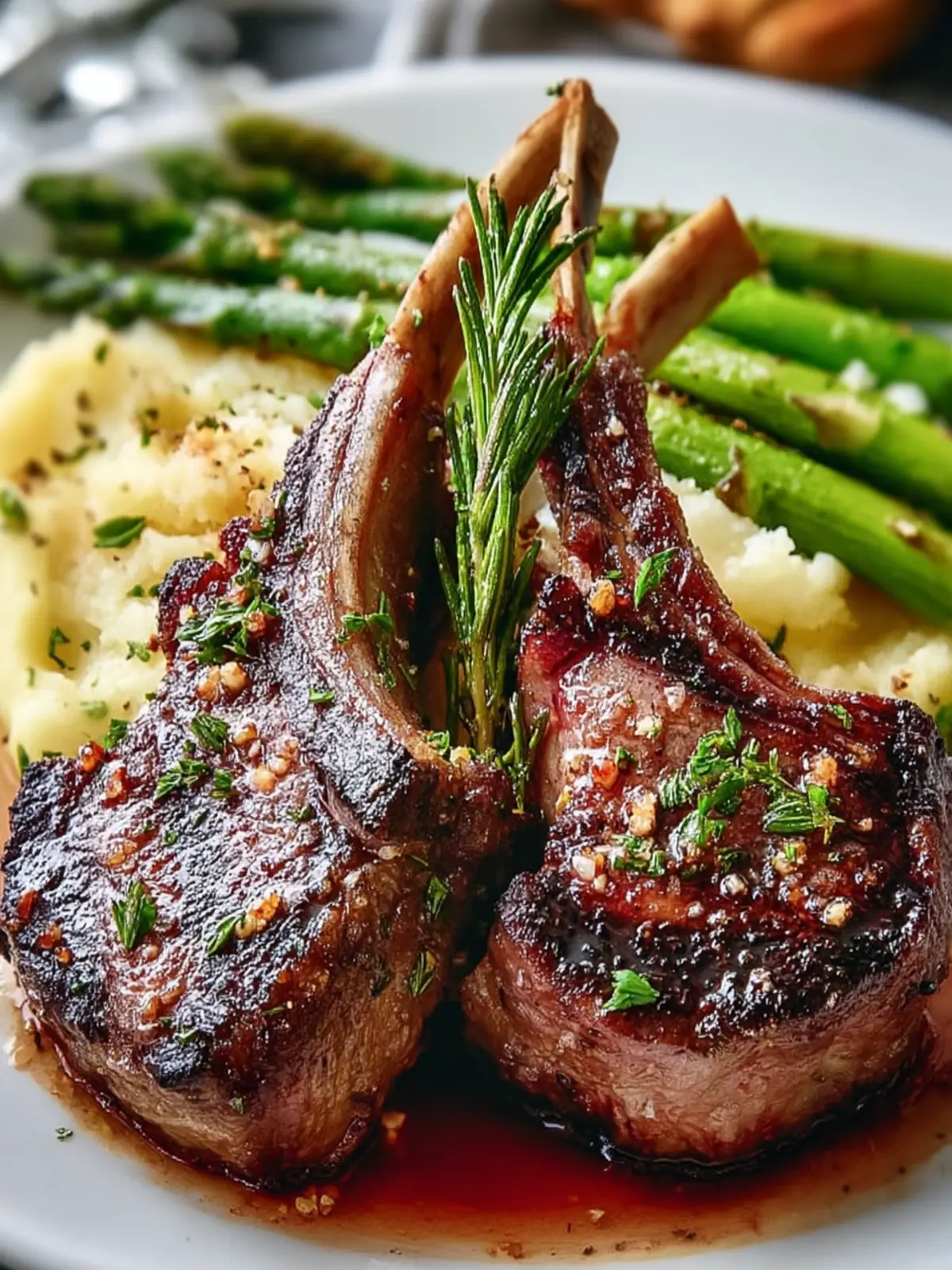 6. Serving: Serve the grilled lamb chops on a bed of mashed potatoes (if using) with grilled asparagus on the side. Garnish with lemon wedges and additional fresh herbs if desired.
