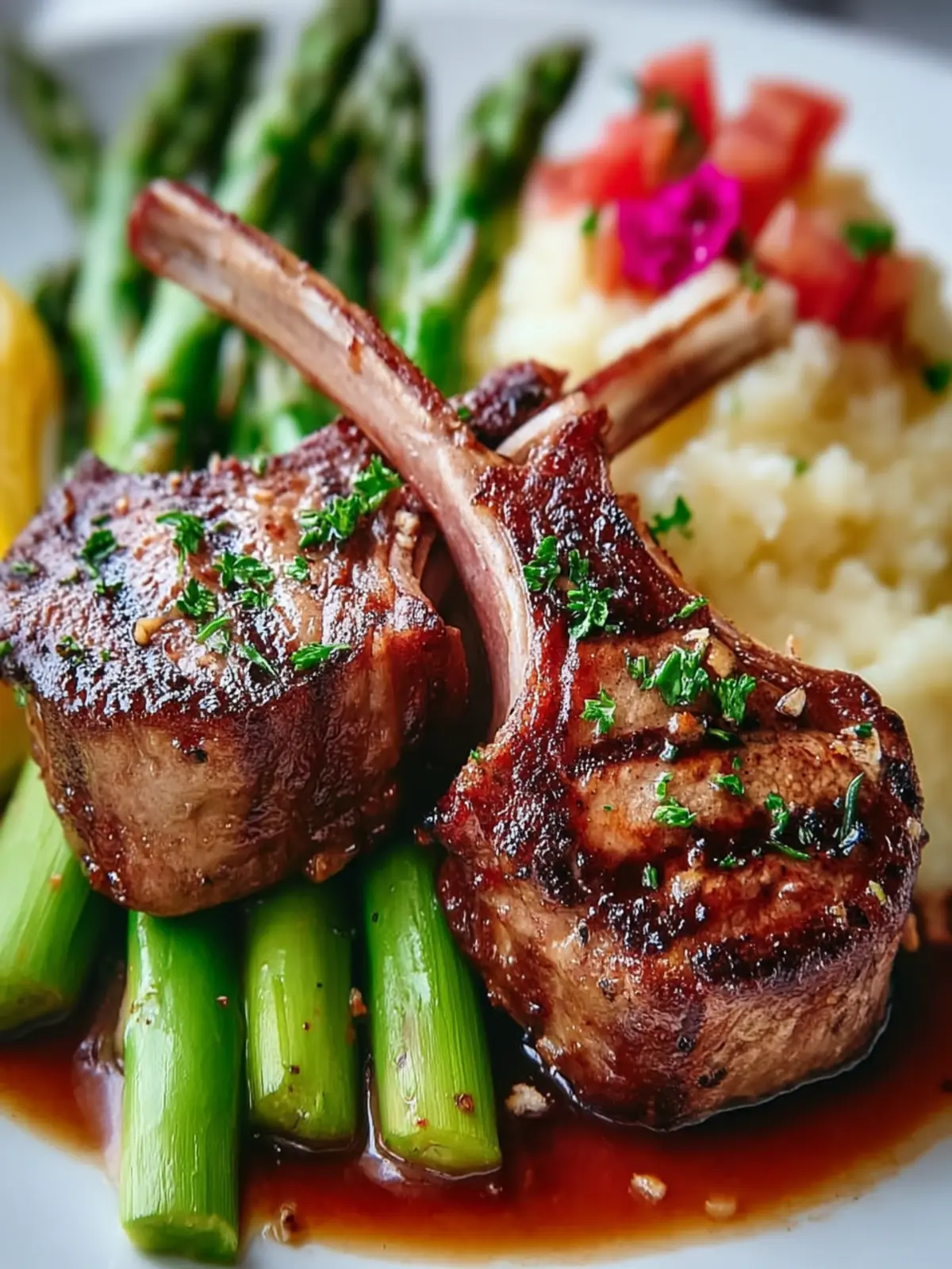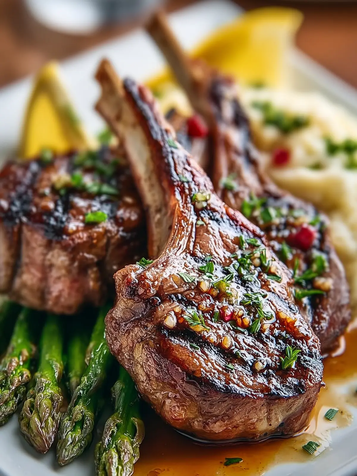 Tender and flavorful grilled lamb chops served with fresh asparagus, ideal for a hearty meal.