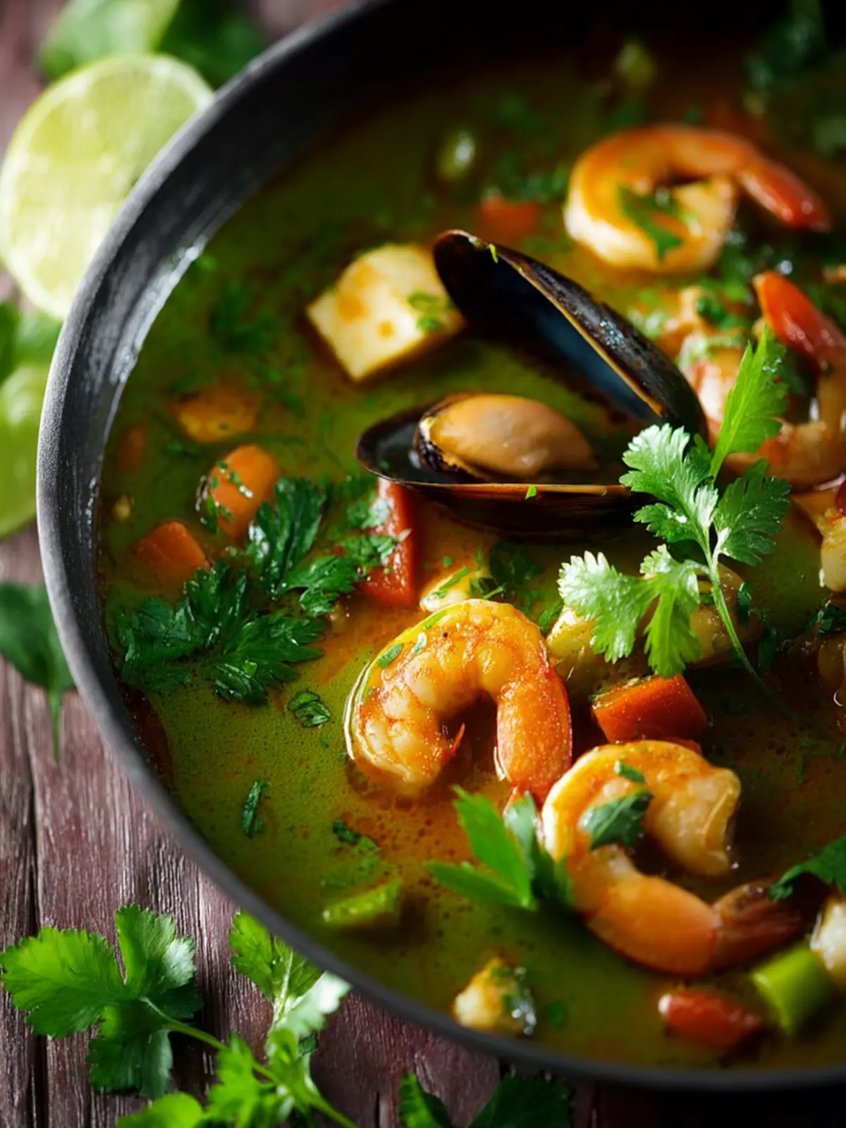 The vibrant colors of the seafood and cilantro broth make this dish visually stunning. You’ll love how it brightens your dinner table and excites your guests, providing not just a meal but a shared moment of delight and culinary exploration.