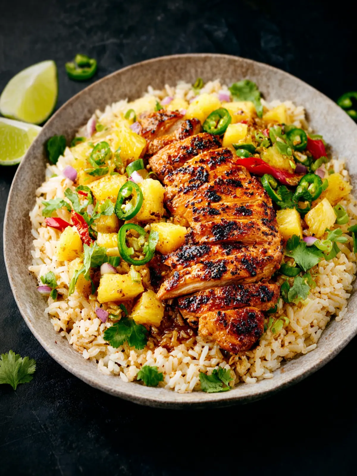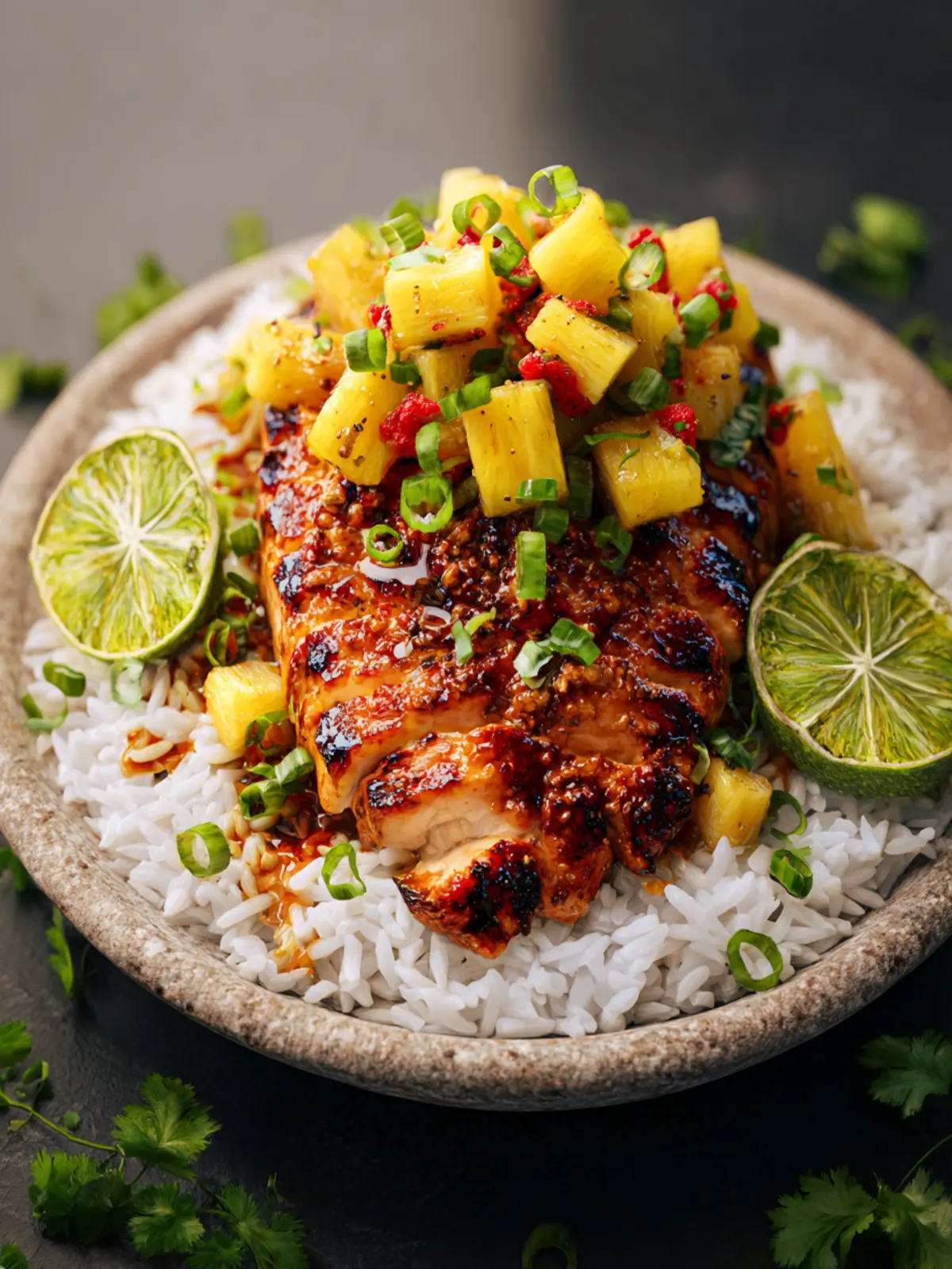 Delicious grilled chicken served with a fresh pineapple salsa, ideal for summer gatherings.