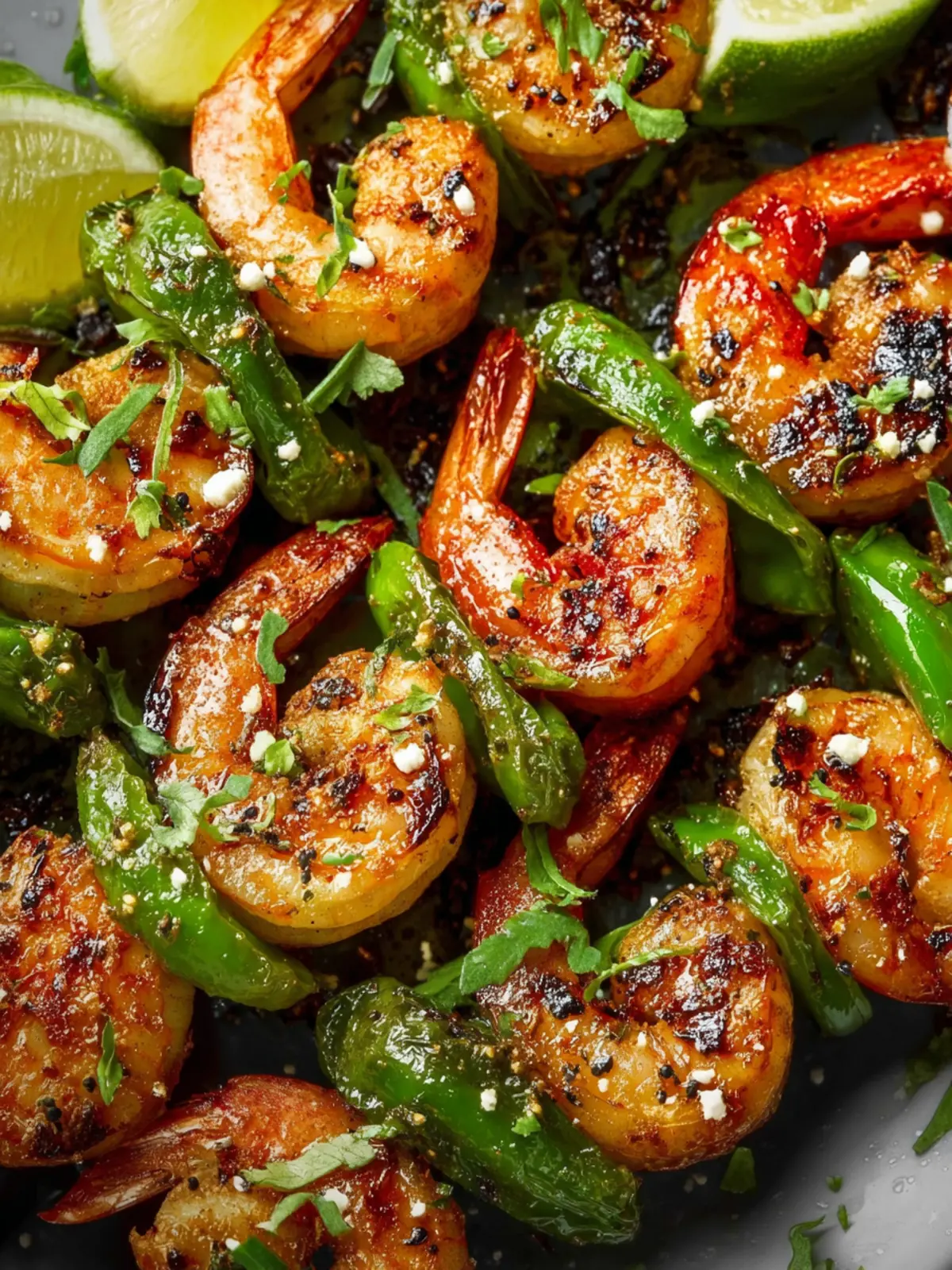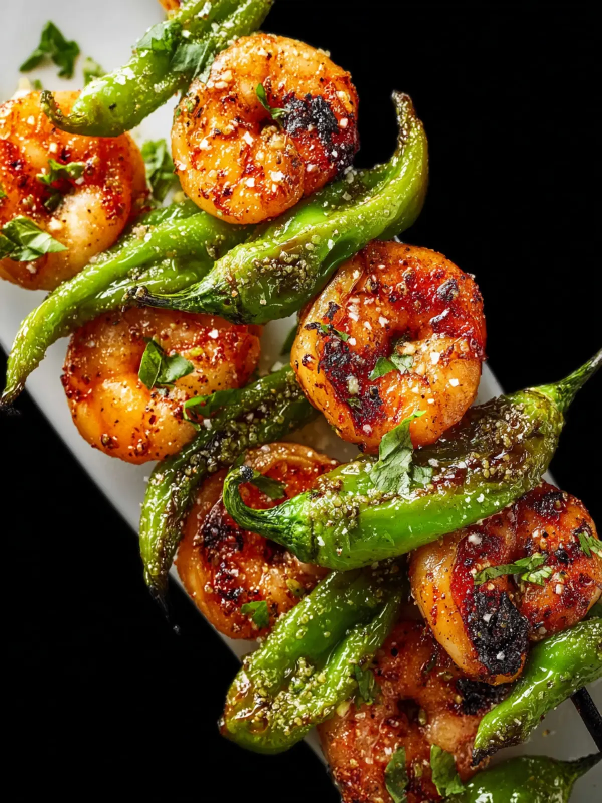 Grilled Shishito Peppers and Jumbo Shrimp Skewers