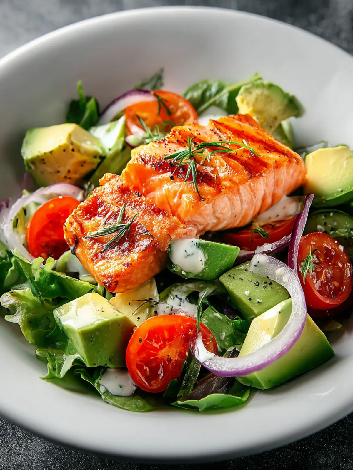 Each bite of this vibrant salad brings together a whirlwind of textures and flavors. The flakiness of the salmon contrasts beautifully with the smooth, velvety avocado, while crisp greens and fragrant herbs add an extra crunch and zing. What makes this salad truly irresistible, however, is how easily it comes together. Whether you’re racing against the clock after a long day at work or hosting friends for a laid-back weekend brunch, this dish requires minimal prep while still delivering a punch of flavor.