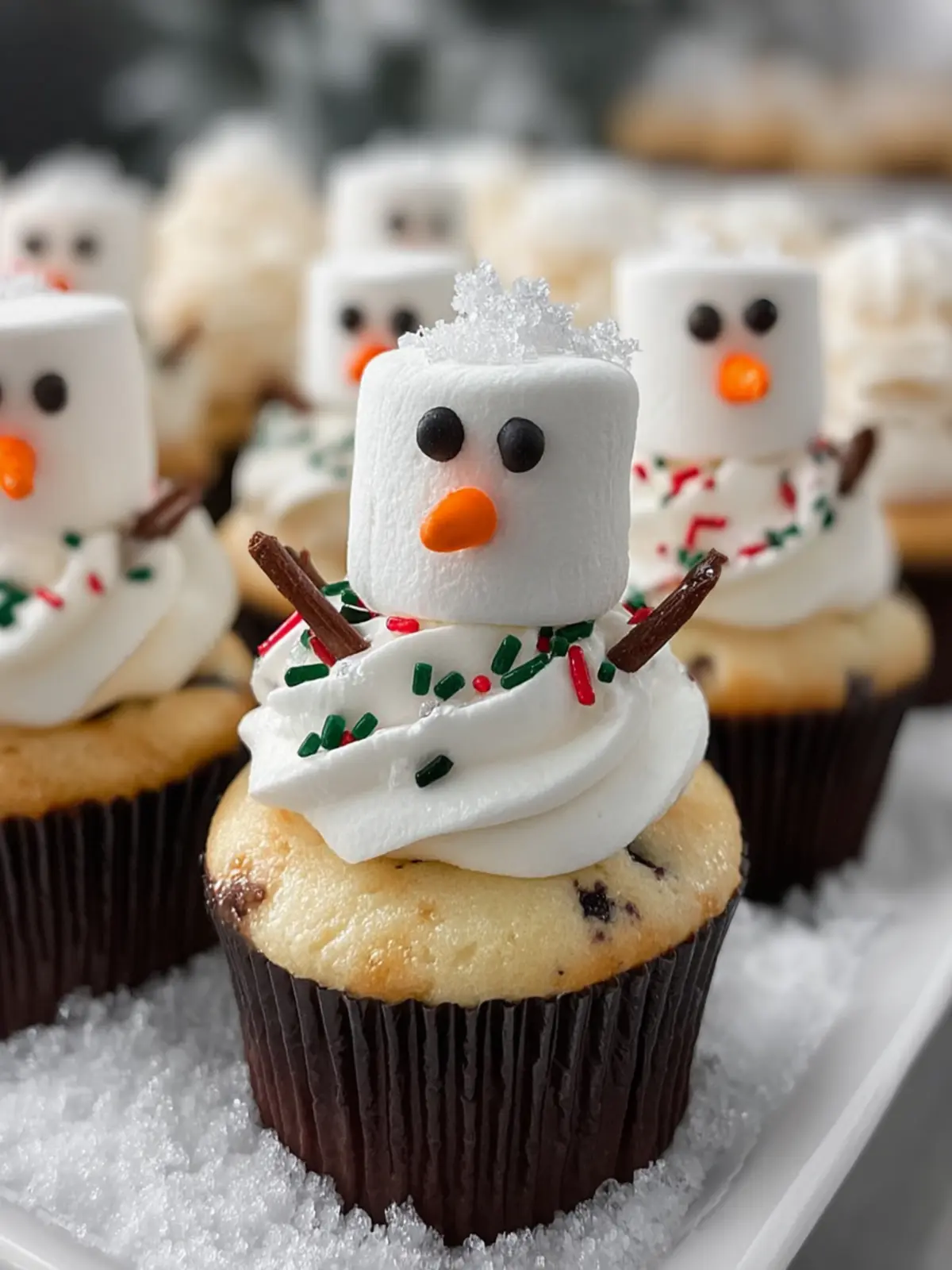 Visual Appeal: The moment you lay eyes on these cupcakes, you’re greeted with a cheerful display. The snowy white marshmallows topped with chocolate chips for eyes, candies for noses, and decorated with colorful scarves — they instantly capture the essence of winter fun. They’re perfect for holiday parties or cozy gatherings.