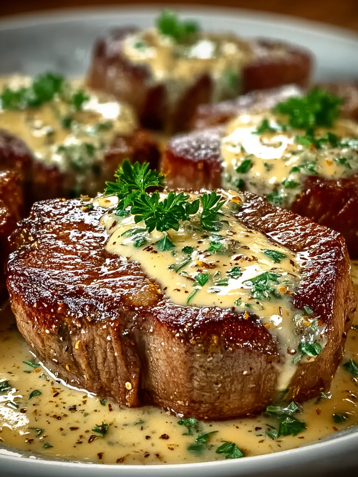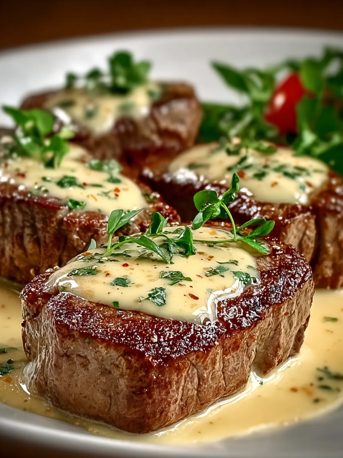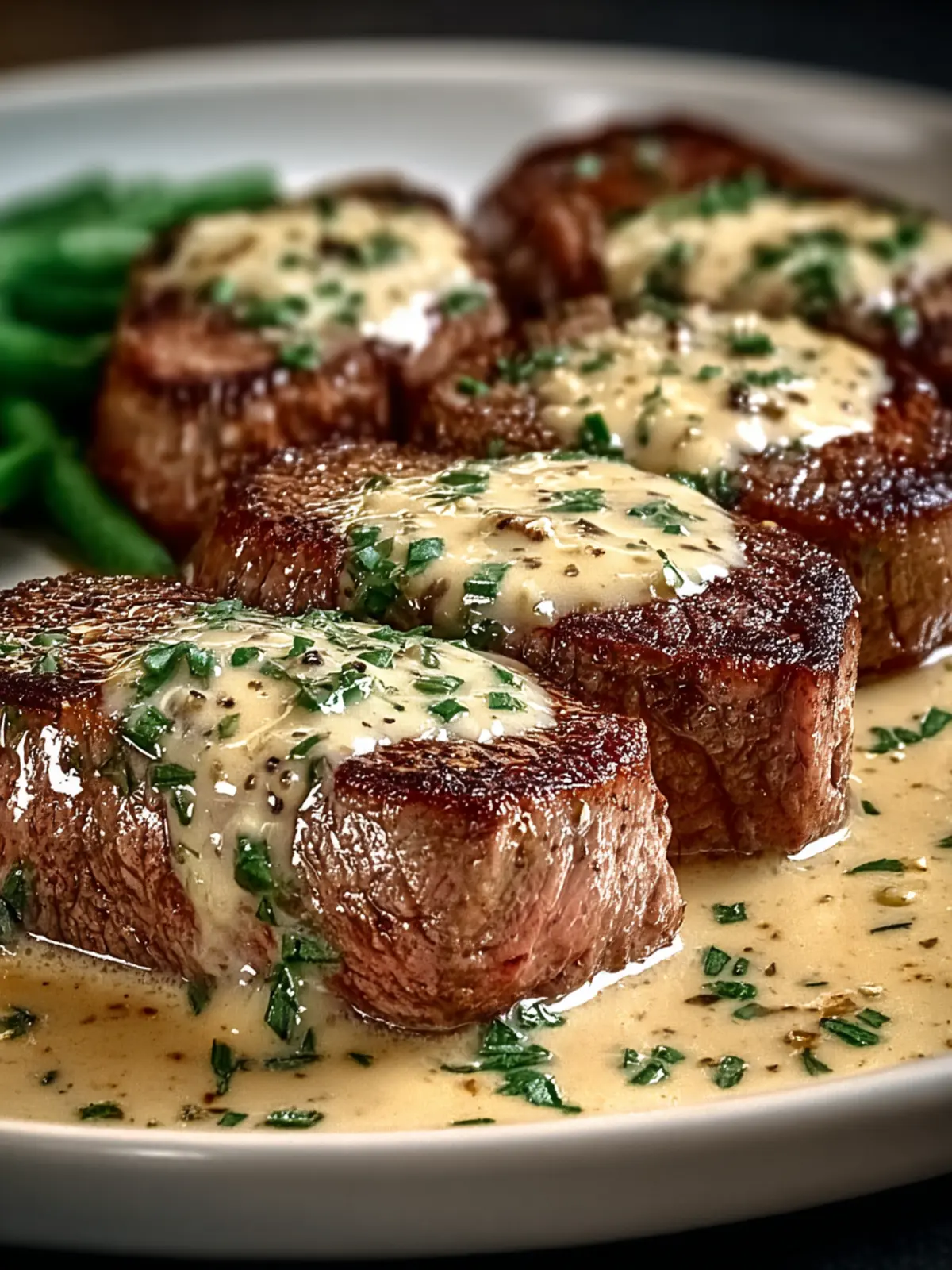Finish off with fresh herbs like parsley or thyme for a pop of freshness. Not only do they visually enhance your dish, but they also add layers of flavor that beautifully complement the richness of the steak and sauce.