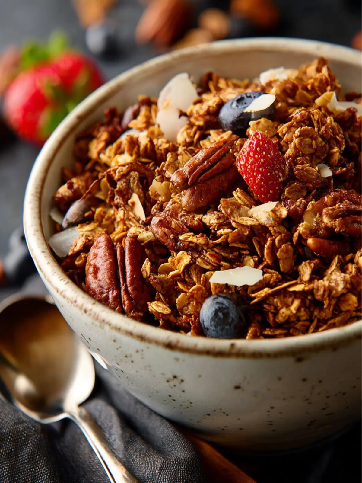 Perfect for Any Meal: Not just for breakfast, this granola makes a fantastic topping for yogurt, a crunchy snack on its own, or even a sweet addition to desserts.